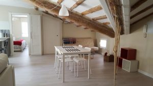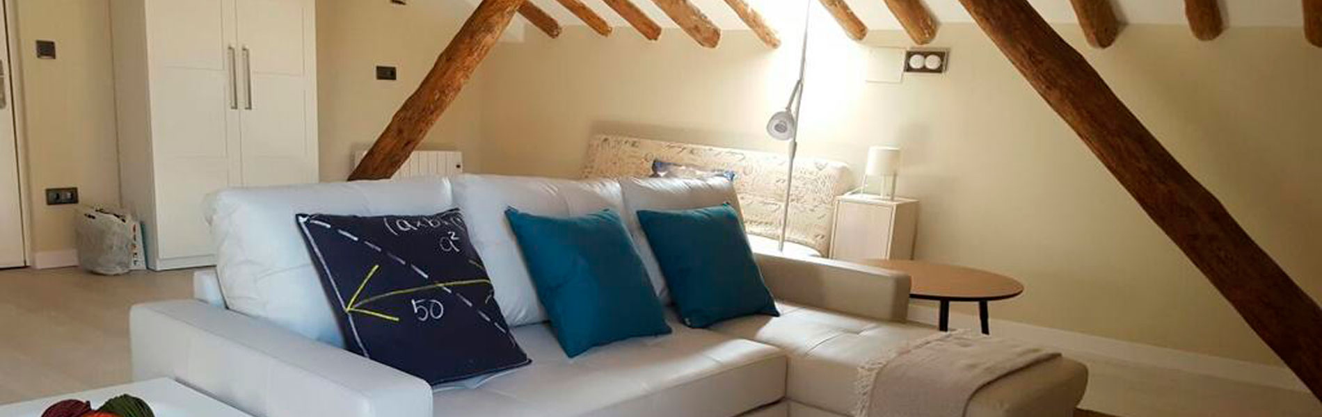 El ático está situado en un edificio Histórico – Artístico del siglo XIX en la céntrica Plaza de Santa Cruz dónde al igual que en 18 Torres I hemos conservado todos los elementos estructurales del edificio.